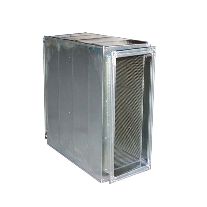 风管消声器是安装在通风管道中降低空气动力性噪声的装置,通过吸声材料(如玻璃棉、岩棉)或特殊结构(如扩张室、穿孔板)吸收或反射声能。按原理分为阻性、抗性、阻抗复合式,阻性消声器针对中高频噪声(如空调风机),抗性消声器适用于低频噪声(如空压机)。具有气流阻力小、消声频段宽的特点,材质多为镀锌钢板或不锈钢,内壁覆防火吸声材料。广泛应用于商场、工厂、机房等场所的通风系统,可有效降低风机运转、气流摩擦产生的噪声,提升室内声环境质量,是建筑声学设计中的重要部件。